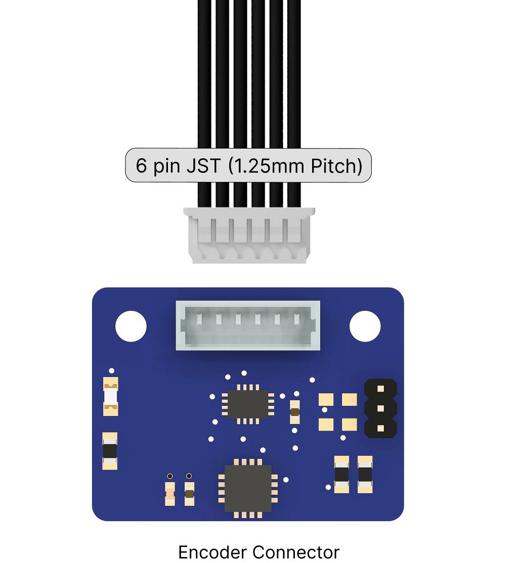 External I/O connections are accessible through a 6-pin JST (1.25 mm pitch) compatible header included with the board.